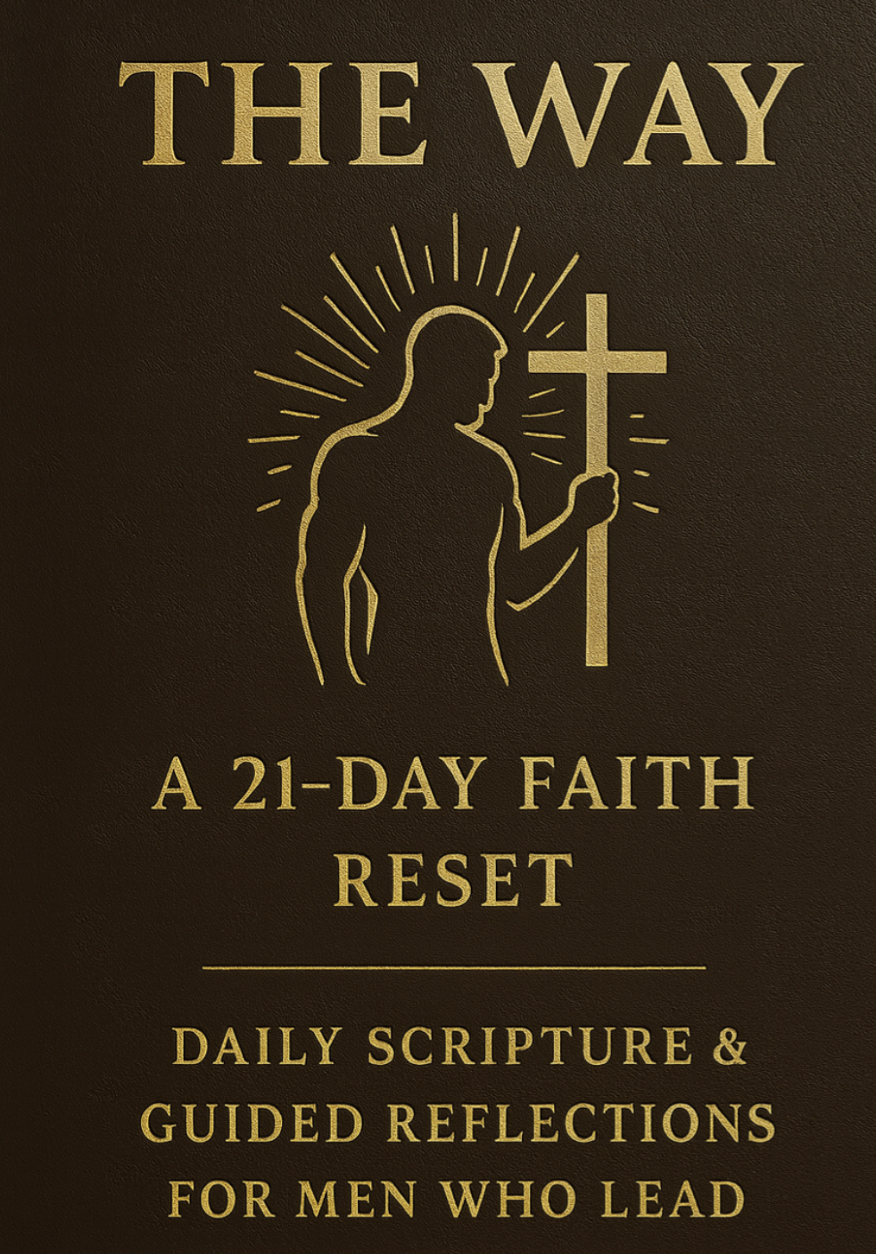 The Way: 21-Day Faith Reset is a Christian men's devotional journal designed to help you reconnect with your faith, rebuild spiritual discipline, and rediscover your identity in Christ. In just 10–15 minutes a day, this guided faith journal weaves together daily Bible verses, modern masculine reflections, and practical faith-based action steps.